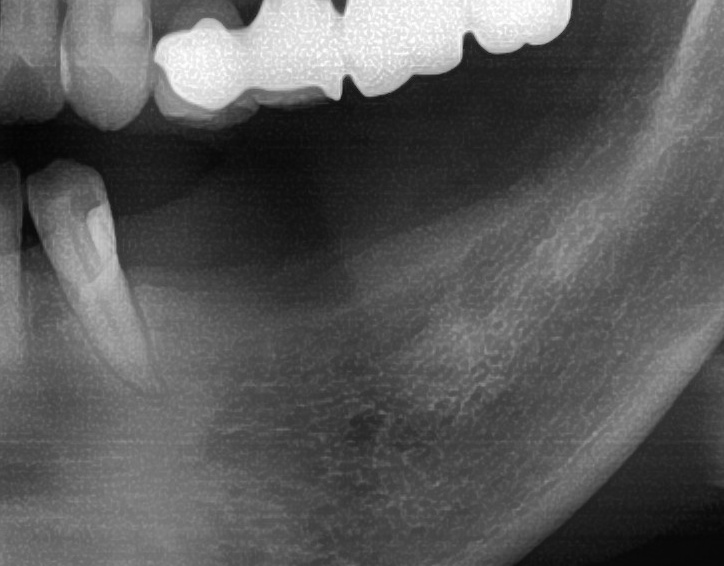 しっかりとインプラント埋め込まれた後は、動揺がないか、噛んだ時に当たらないかなどを確認して、最後にパノラマ写真を撮影して今回のオペは終了となりました。