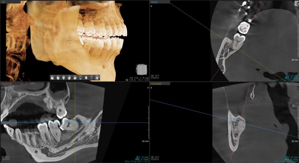 親知らずの根っこは下歯槽神経から近い距離にありますが、抜歯は可能との診断でした。