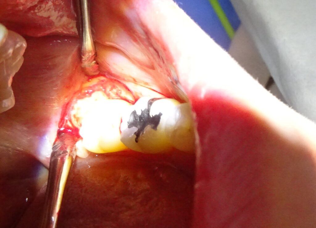 まずは親知らずは歯茎の下に隠れている状態なので、歯茎を切開していきます。