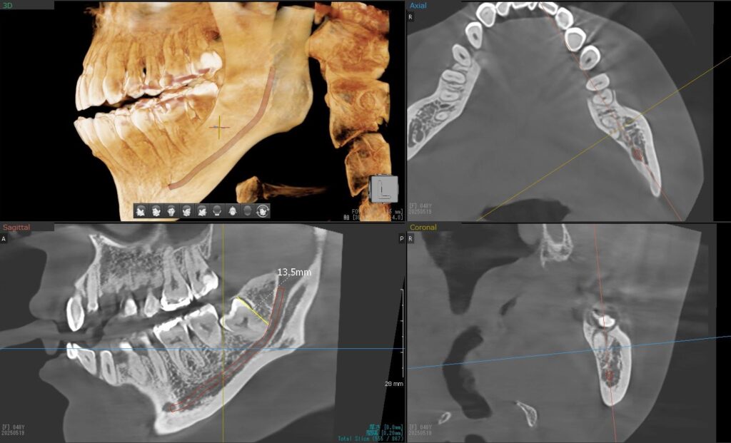 さらに、下顎の親知らずは下歯槽神経に非常に近いところに生えている場合もあるため、CTも撮影し詳しい解析を行います。