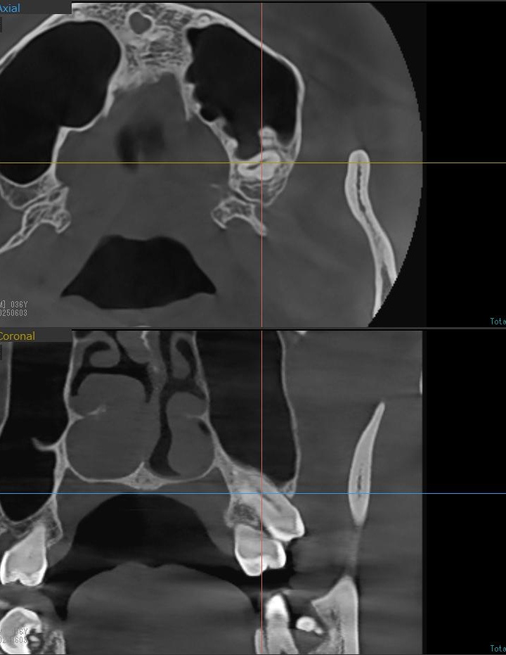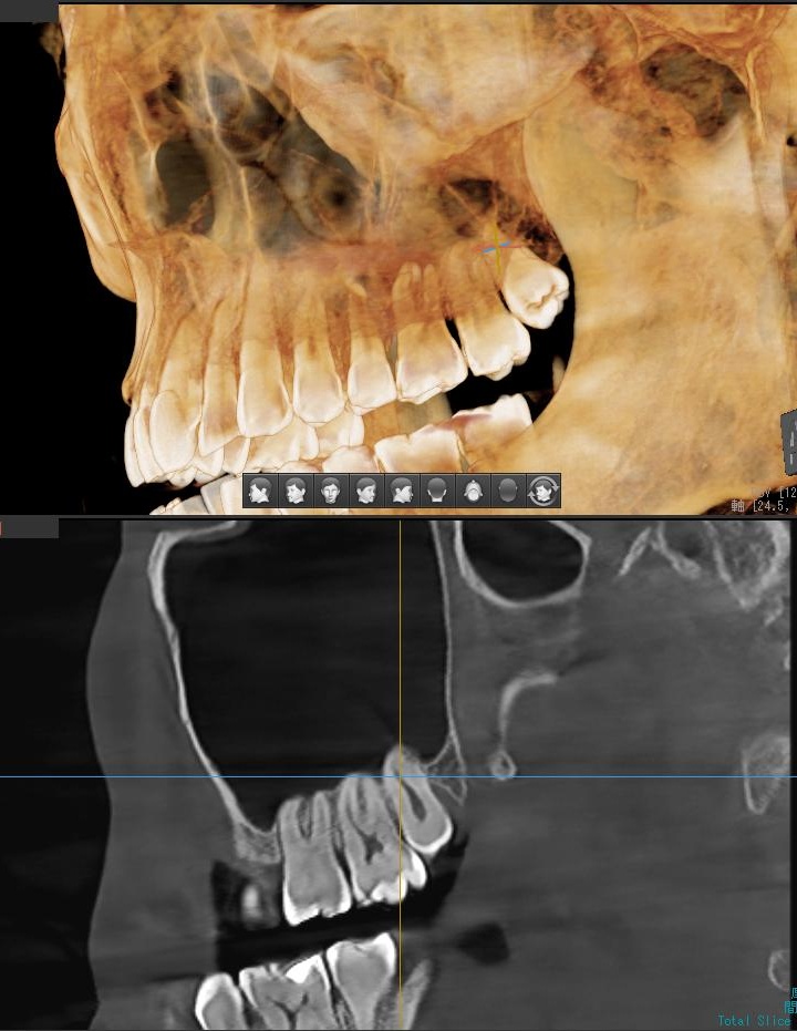 上顎の親知らずの場合、親知らずの根っこが上顎洞という空洞と非常に近い場合もあるため、CT撮影でも確認します。