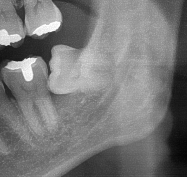 まずお口の中を確認してみると、左下の親知らずは一部分が見える状態でした。