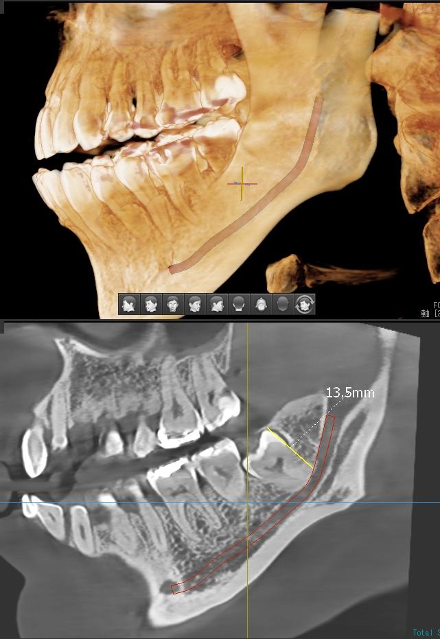 さらに、下顎の親知らずは下歯槽神経に非常に近いところに生えている場合もあるため、CTも撮影し詳しい解析を行います。
