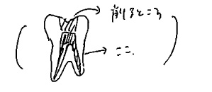 歯の噛む面に穴をあけてそこから細い器具を使って歯の中にある神経いるくだの方をおそうじしてとっていきます。