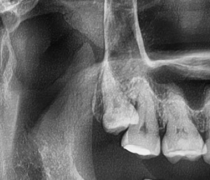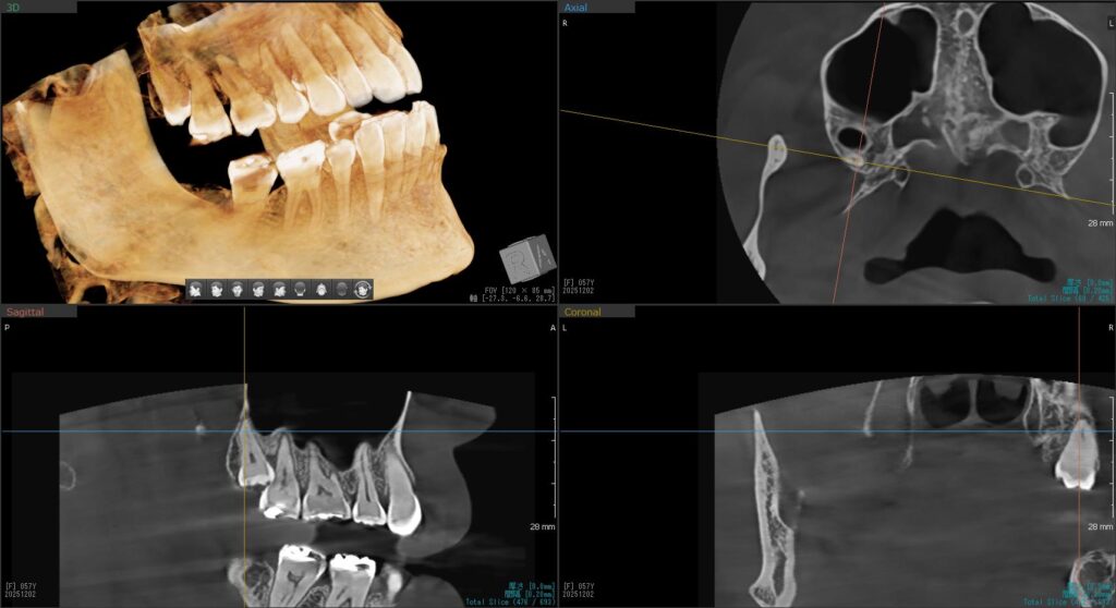 CTで確認すると、上顎洞に近いため「上顎洞炎」になる可能性がある、難症例です。